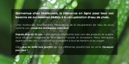 Multicuves est le Spécialiste des Accessoires pour la Récupération d'Eau de Pluie avec une Cuve de 1000 Litres : Vanne de cuve, Robinet, Raccord, Kit de Raccordement. La Livraison est Gratuite en France Métropolitaine.
