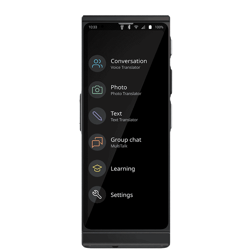 Connosco, pode falar sem esforço com qualquer pessoa. Vamos quebrar as barreiras linguísticas para si, uma vez que os nossos dispositivos de tradução oferecem até 108 línguas.